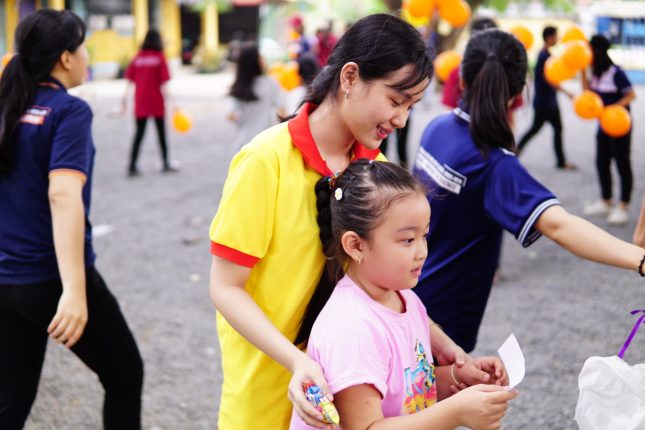 Tại đây, chuỗi hoạt động gian hàng trẻ thơ bao gồm các trò chơi dân gian, gian hàng khoa học được cải biến vô cùng đặc sắc. Bên cạnh đó, ban tổ chức còn đưa đến chương trình tập huấn với chủ đề “ Hành động nhanh đổi lấy môi trường xanh” bằng việc hướng dẫn các em phân loại rác. Ngoài ra các bạn cộng tác viên của hoạt động cũng đã gây quỹ với số tiền 2.000.000 đồng để tài trợ 10 suất học bổng cho các em có hoàn cảnh khó khăn vượt khó học giỏi. Chương trình đã diễn ra với sự góp mặt của hơn 60 học sinh, phụ huynh cùng với sự có mặt của nhà trường và xã đoàn Phú Hòa Đông.